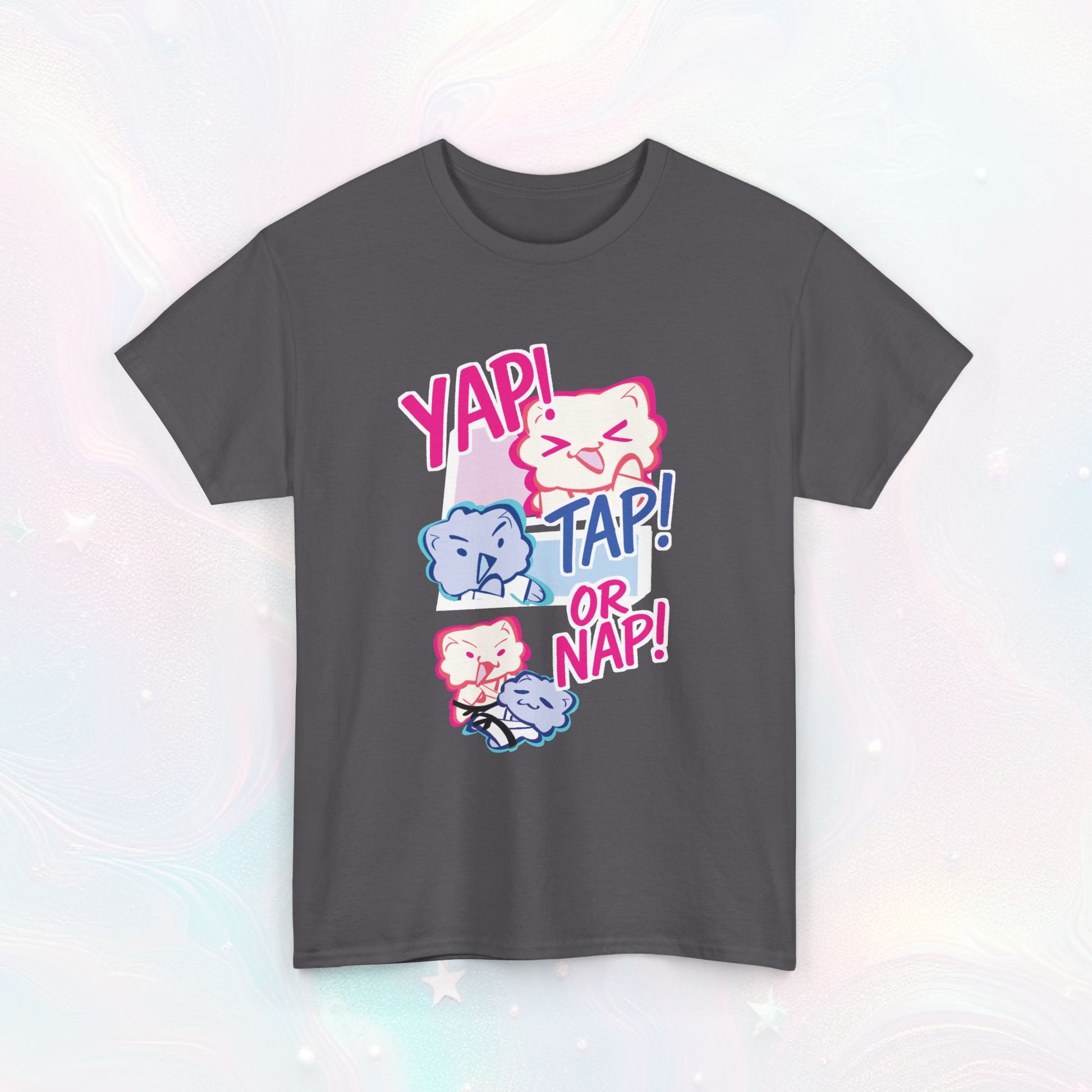 For our friends who love martial arts, we give you the YAP! TAP! OR NAP! shirt you can sport at your next event or use as at-home loungewear!
